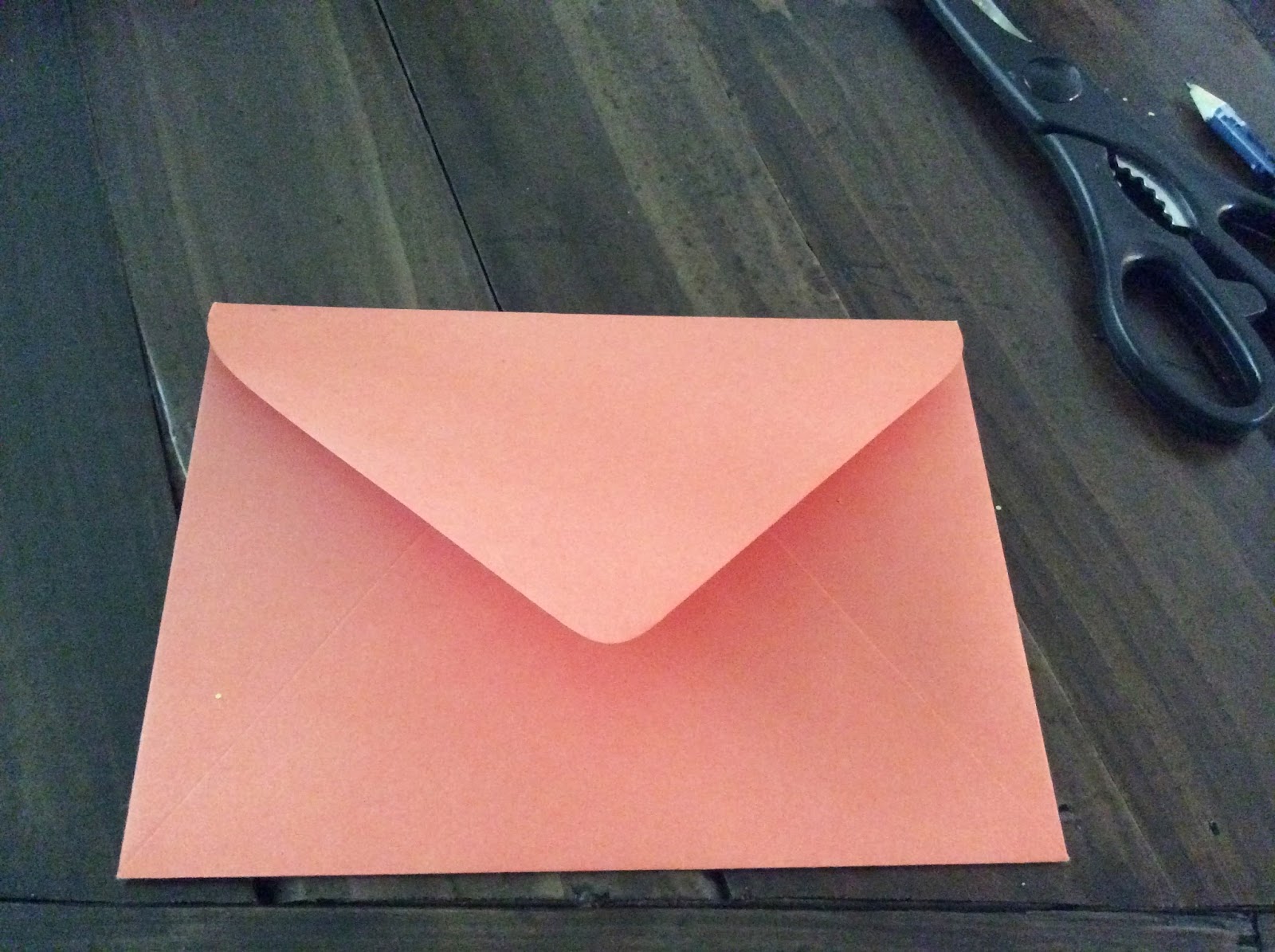 In order to make the background for my frame, I took a coral colored envelope and cut it to size.