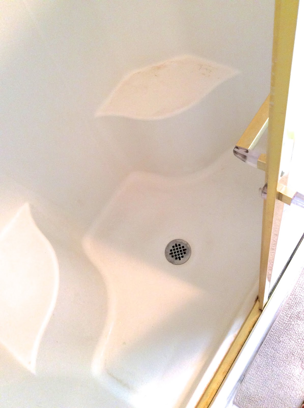 Amazing isn't it?! I can't wait to take a shower in there tomorrow! It's going to feel like we bought a brand new shower. I'm honestly not even sure that these pictures do it justice! I highly recommend this crazy cool shower cleaner! I actually tried it on some of the filthy tiles in our bathroom as well to see if it would get the dirt off of them. Guess what!---It worked on those too!
